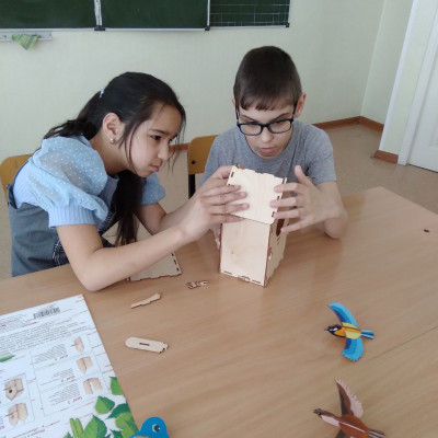Ребята из объединения " Волшебный крючочек" на занятиях познакомились с моделью скворечника и правилами его установки, с особенностями жизни птиц весной.
