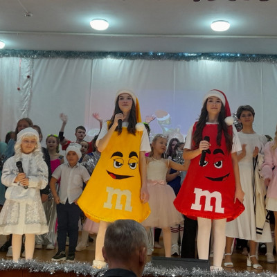 Новогодний концерт сопровождался новогодними песнями в исполнении воспитанников объединений: «Джем» (педагог дополнительного образования Е.А. Карпачева), «Клевые девчонки» (педагог дополнительного образования О.В. Дашина), «Перспектива» (педагог дополнительного образования Е.А. Ендовицкая), «Веселый пластилин» (педагог дополнительного образования Е.Н. Мордасова) и зажигательными танцами в исполнении студии эстрадного танца «Ситара» (педагог дополнительного образования М.Г. Красавина), девочек из объединения «ЗОЖиК», «Клевые девчонки» (педагог дополнительного образования О.В. Дашина), стилизованным танцем порадовали обучающиеся объединения «Перспектива» (педагог дополнительного образования Е.А. Ендовицкая).