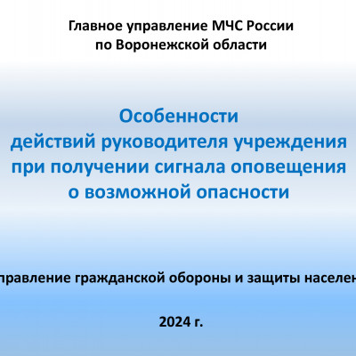 Особенности действий руководителя учреждения при получении сигнала оповещения о возможной опасности.